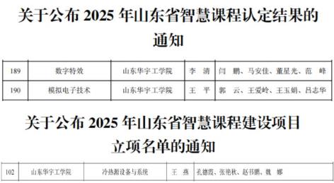 近日,山东省高等教育学会、山东省高等学校课程联盟发布了2025年山东省智慧课程认定结果和智慧课程建设项目立项名单,山东华宇工学院2门课程认定为山东省智慧课程,1门课程立项山东省智慧课程建设项目。