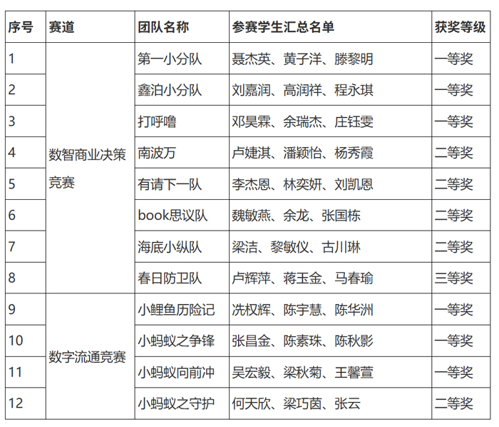 日前,全国第四届高校数智化商业决策创新大赛全国总决赛圆满落幕。湛江科技学院会计学院12支参赛队伍在比赛中表现优异,共斩获一等奖6项、二等奖5项、三等奖1项。