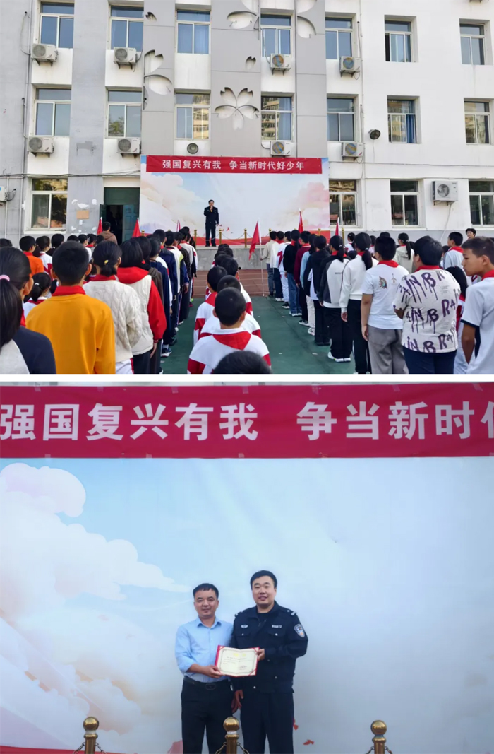仪式还特别邀请了和平街派出所梁黎民警官为全体师生带来一场生动的法治宣讲。梁警官以案说法,深入浅出,引导同学们树立法治意识,学会用法律保护自己。为持续加强校园法治教育,学校特聘请梁警官担任“法治副校长”,彭阳平校长为其颁发聘书,现场掌声热烈。