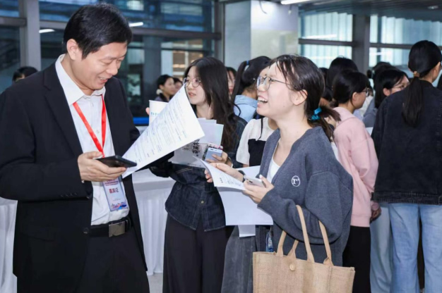 记者注意到,在研讨会举办期间,现场气氛热烈,来自多个学院的两百余名学生齐聚汇星楼报告厅,带着各自的简历、作品集、教学设计成果和问题,把前来参会的中小学校长、以及名师校友代表“团团围住”。有的学生现场向“大师哥大师姐”请教教师面试技巧和学校招考情况;有的同学直接投递简历,与校长面对面沟通表达实习意愿;更有辅导员亲自上阵,根据学校的用人需求,精准推荐优秀应届毕业生……