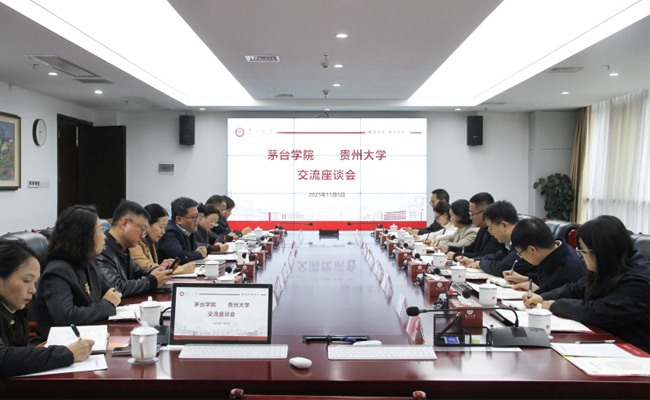 11月5日下午,茅台学院校长于灏洋带队到贵州大学交流座谈。贵州大学副校长陈艳波 ,茅台学院副校长赵正一出席座谈会。