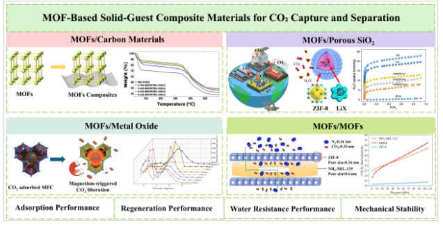 MOFs复合材料凭借其超高吸附容量、优异的吸附选择性和高度可调控性,成为极具前景的CO2吸附剂。此类复合材料有效解决了单一MOF吸附剂在CO2吸附分离中普遍存在的成本高、结构稳定性不足、气体传质效率低、对湿度敏感等共性问题。