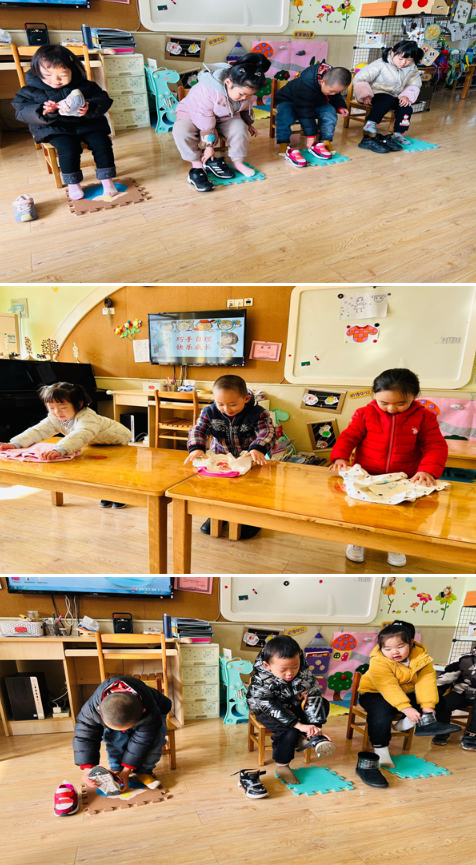 本项比赛活动密切联系生活实践,根据幼儿的年龄特点与发展需要,制定了叠衣服,穿鞋子等活动。通过一段时间的日常生活练习,在比赛过程中,孩子们纷纷变得越来越能干。