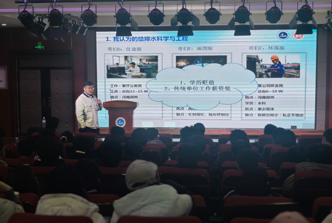 曹泰洋以对给排水专业的理解为出发点,与同学们分享了读博读研期间的课程学习、日常生活及科研经历,鼓励同学们顺应时代浪潮、珍惜当下时光、广泛拓展视野,在探寻个人兴趣方向中增强核心竞争力,始终保持积极心态,勇于探索尝试、书写青春华章。刘诗浩则结合在校期间的社团经历与社会实践经验,建议同学们尽早明确个人发展目标,以目标为导向制定科学规划,在持续提升综合素养的过程中,为未来的就业升学之路筑牢坚实基础。在互动环节,同学们热情满满,踊跃提问,两位嘉宾结合自己的经验就就业与升学的选择等问题逐一作了解答。