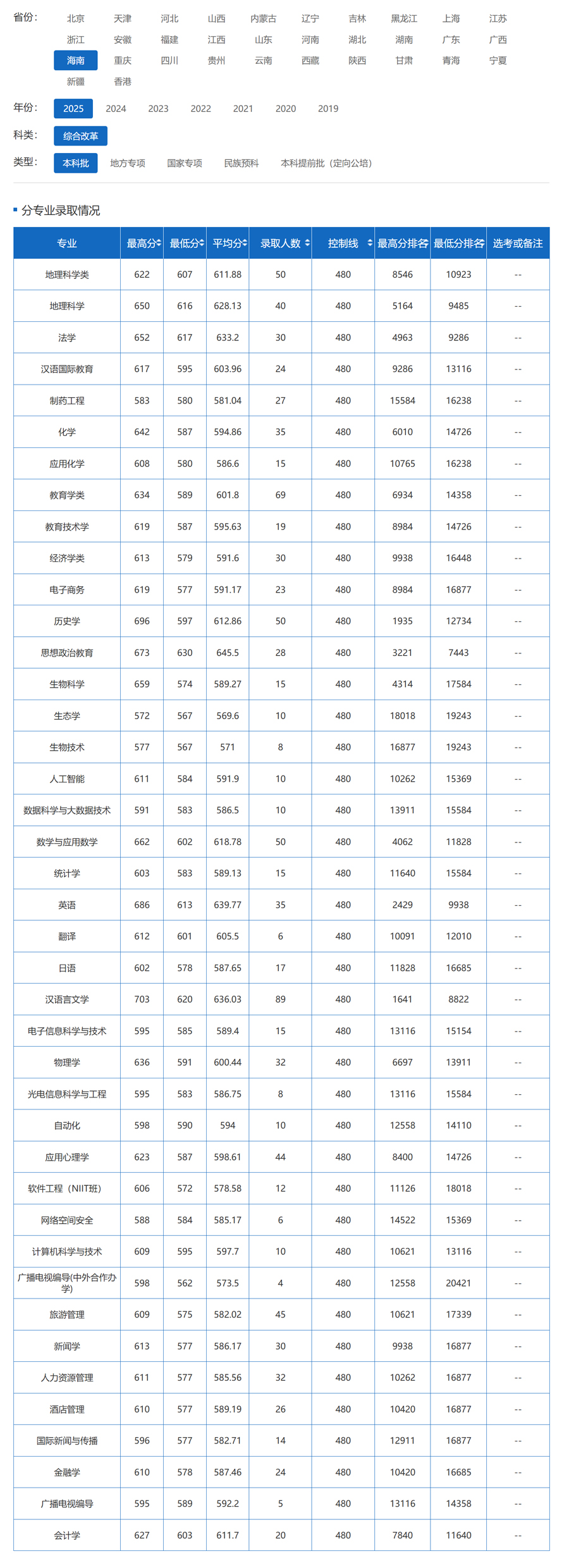 其他类别及省份信息详见:https://zhaosheng.hainnu.edu.cn/zsw/lnfs.html