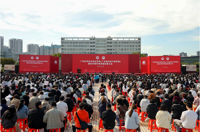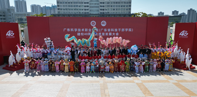 四秩华章,薪火相传;赓续奋进,再谱新篇。11月28日,广东科学技术职业学院(广东省科技干部学院)以“四秩华章 科创致远”为主题,在珠海校区中心广场举行建校40周年高质量发展大会,回顾学校40年来筚路蓝缕、砥砺前行的奋斗历程,擘画未来高质量发展蓝图。