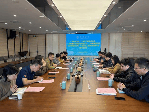 11月 27日,广东省工程造价协会率广东省国际工程咨询有限公司、广州易达建信科技开发有限公司、广东宏正工程咨询有限公司领导来广东白云学院建筑工程学院,就 “AI 赋能造价司法鉴定”项目开展研讨与合作洽谈。会议在广东白云学院白云楼国际会议厅举行,广东白云学院纪秋颖副校长出席会议并讲话。