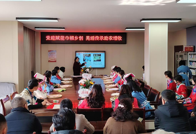 为助力乡村振兴新发展,进一步激活非遗文化活力,搭建乡村女性创业增收平台,2025年12月2日,阿坝师范学院联合中共水磨镇马家营村党总支、中共水磨镇寨子坪村党支部、中共水磨镇牛塘沟村党支部、中共水磨镇刘家沟村党支部,在寨子坪村村委会会议室举办“党建赋能巾帼乡创·羌绣传承助农增收”支部共建活动,各共建支部党员代表、乡村女性村民及高校师生等共47人参与其中。