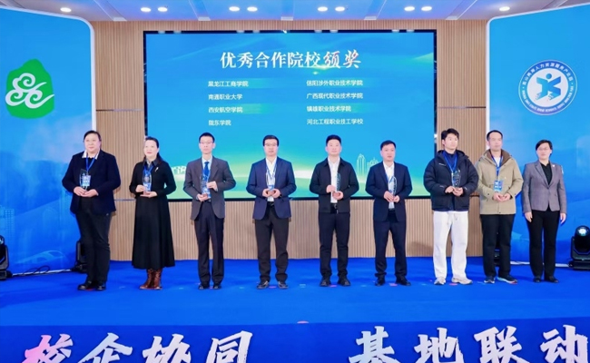 推进会上,昆山市对过去一年在人力资源合作领域表现突出的单位进行了表彰。凭借与立讯精密在人才培养、产教融合等方面的卓越贡献,南通职业大学荣获“2024年度优秀合作院校”称号。党委委员、副校长戴世明作为江苏地区唯一高校代表上台领奖,这一荣誉不仅是对南通职业大学与立讯精密合作成效的高度认可,更是激励南通职业大学在未来继续深化合作、创新人才培养模式的强大动力。