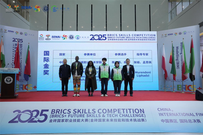 12月5日至8日,2025金砖国家职业技能大赛(金砖国家未来技能和技术挑战赛)建筑信息建模赛项国际总决赛在宜宾职业技术学院举办。建筑与环境学院选派的参赛代表队荣获该赛项国际总决赛一等奖与国际金奖两项最高荣誉。