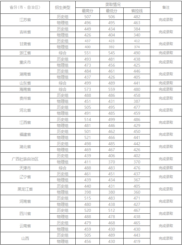 仰恩大学2025年分省(市、自治区)招生录取情况表