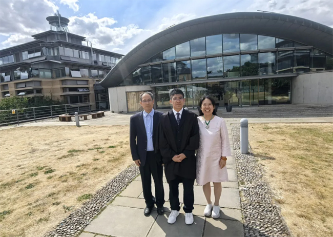 剑桥大学硕士毕业典礼,杨同学和父母合影
