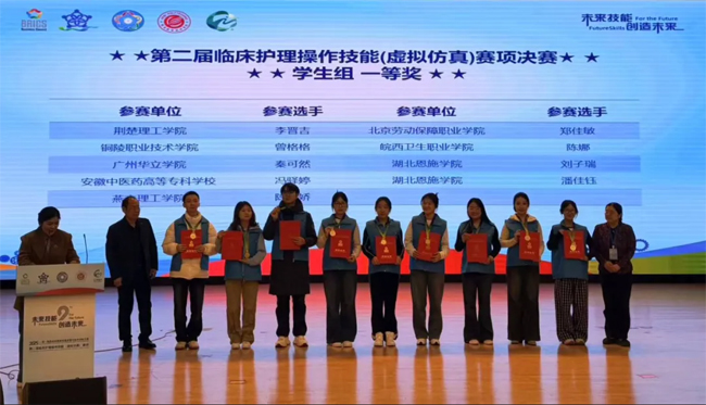 在“第二届临床护理操作技能(虚拟仿真)赛项”中,劳职院学子再创佳绩:高职学生郑佳敏荣获一等奖,祖欣怡荣获三等奖,杨谨鸽荣获优秀奖,指导教师武燕燕荣获优秀指导教师奖,劳职院荣获最佳组织奖。