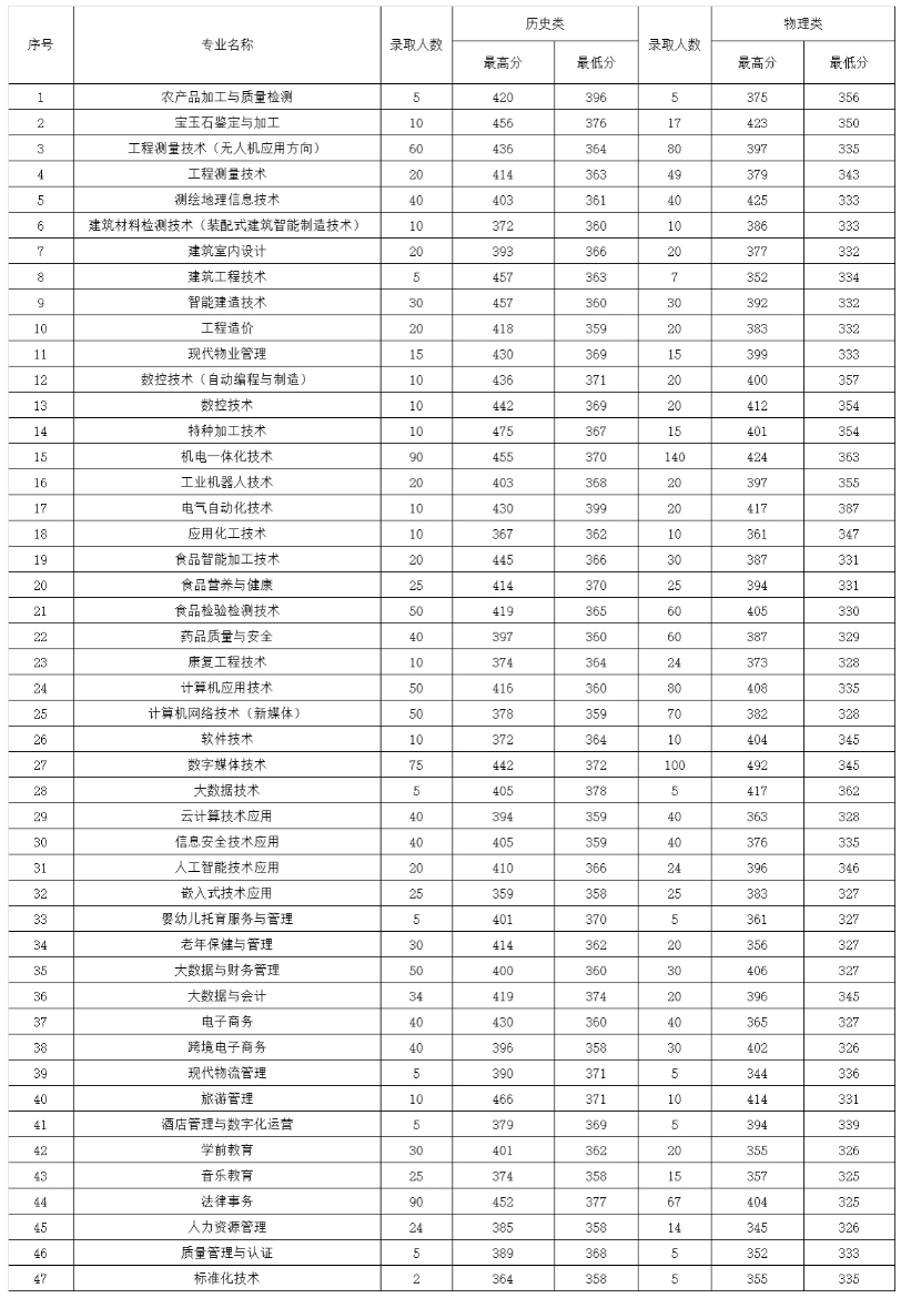 河南质量工程职业学院2025年高职专科专业录取分数统计