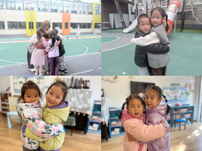 冬日的温暖不仅来自衣物与食物,更来自彼此的陪伴与关爱。在“温暖的抱抱”互动中,孩子们主动向老师和小伙伴张开双臂。一个个紧紧的拥抱、一张张灿烂的笑脸,传递着真挚的情感。