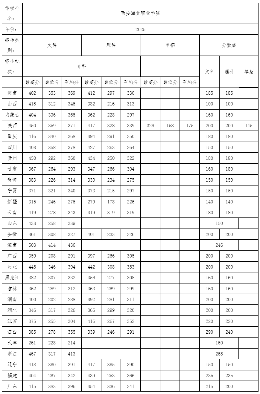浙江横店影视职业学院2025年省外高职招生录取分数线统计表