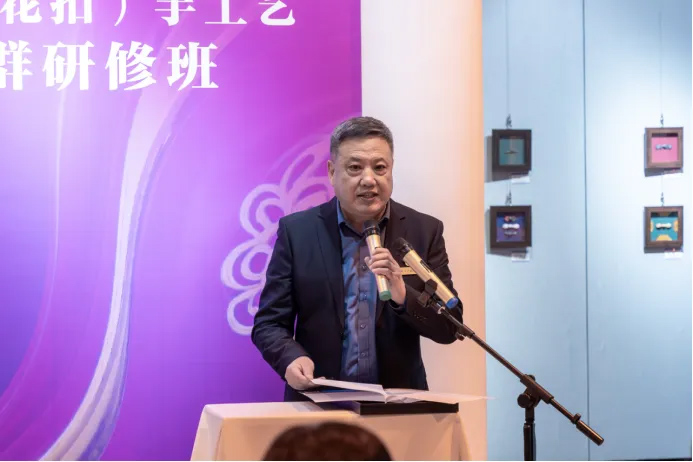 本次研修班的主讲导师、省级非遗代表性传承人,工艺美术大师贾淑娟大师在发言中回顾了与学员共同钻研技艺的难忘过程,对他们的快速成长与热忱坚守表示欣慰。她强调,“培训有期,传承无限”,未来将继续关注学员发展,助力他们将所学转化为推动非遗工坊建设、教学创新与设计实践的实际行动。