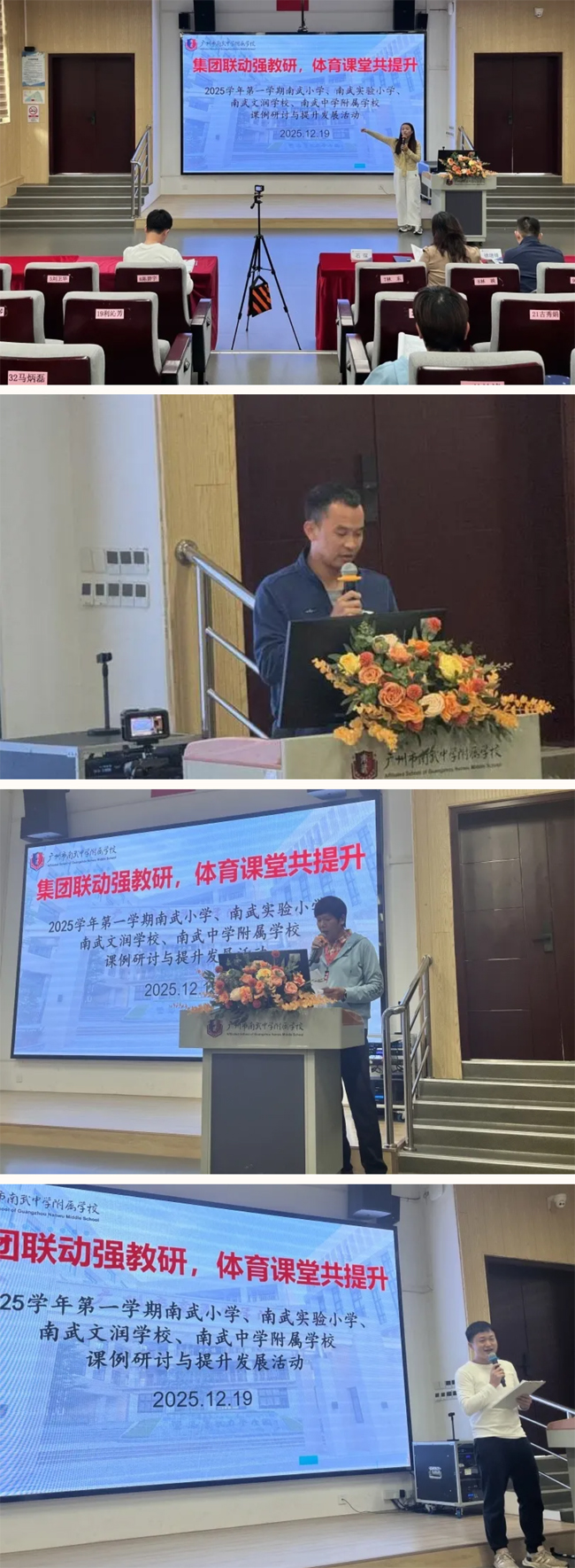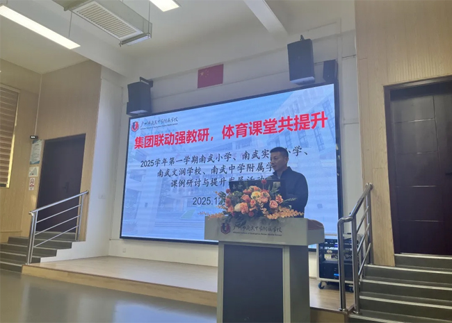 冬日暖阳映校园,教研聚力启新程。为促进校际资源共享,优化体育教学方法,助力青年教师成长,2025年12月19日下午,南武教育集团四校——南武小学、南武实验小学、南武文润学校、广州市南武中学附属学校,齐聚南武中学附属学校,成功举办 “集团联动强教研,体育课堂共提升” 联合教研活动。四校领导与海珠区小学体育教研员徐继锋老师莅临指导,四校教学负责行政及体育科组老师共同参与,在交流碰撞中共探体育教育提质之路。