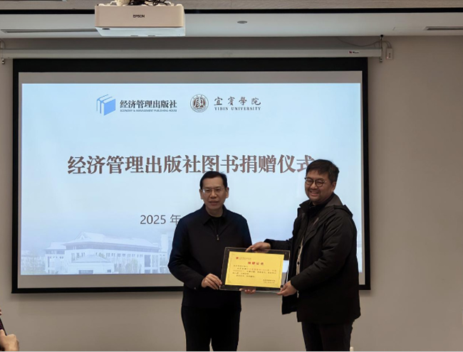 近日,经济管理出版社向宜宾学院捐赠图书暨盟校合作交流座谈会在学校临港校区图书馆 408 会议室举行。宜宾学院党委副书记、院长杜正聪,民盟中国社会科学院委员会主委、中国社科院民族学与人类学研究所研究员王昌海,民盟中国社科院委员会委员、经济管理出版社分社社长曹靖,民盟北京邮电大学委员会主委、北邮电子工程学院教授刘玉敏,民盟宜宾市委会主委、宜宾市政协副主席廖霆,宜宾学院相关部门负责人参会。