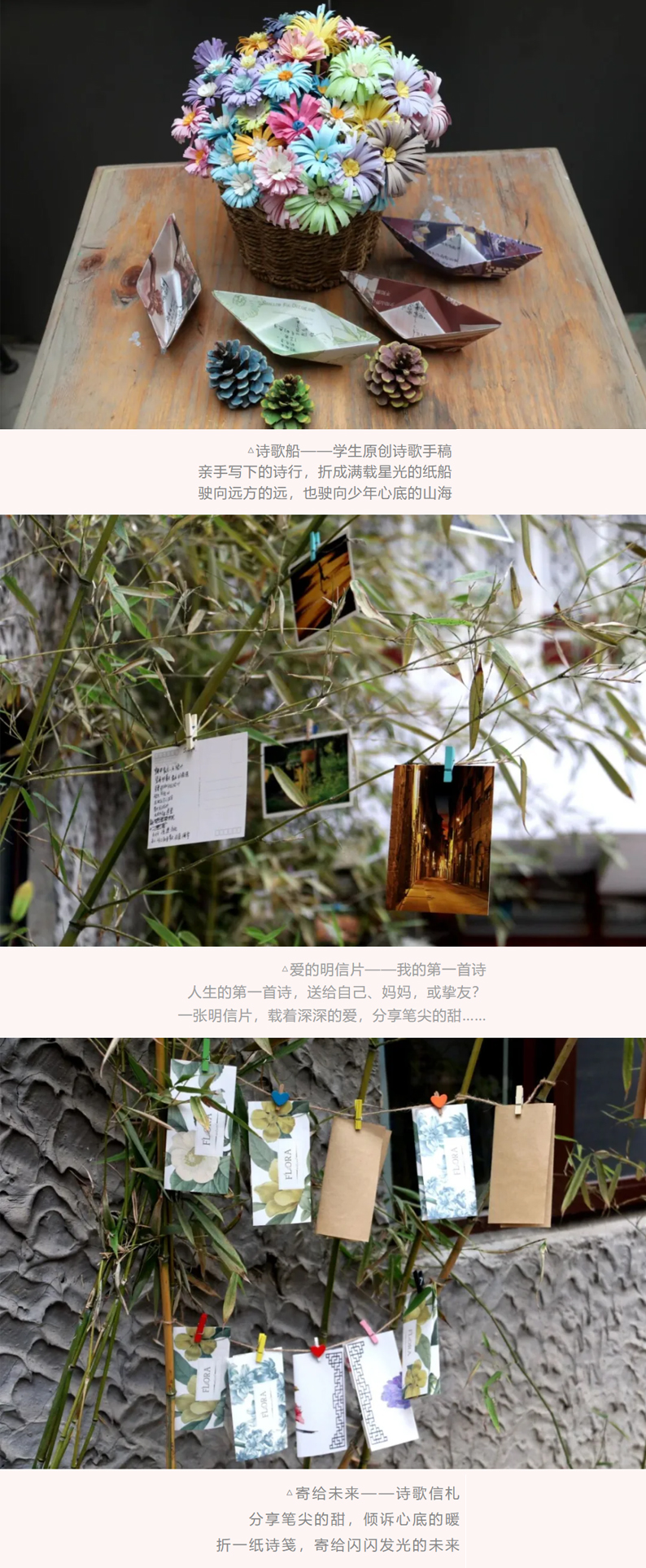 凯博学生把诗行折成纸船,制成信笺与明信片,