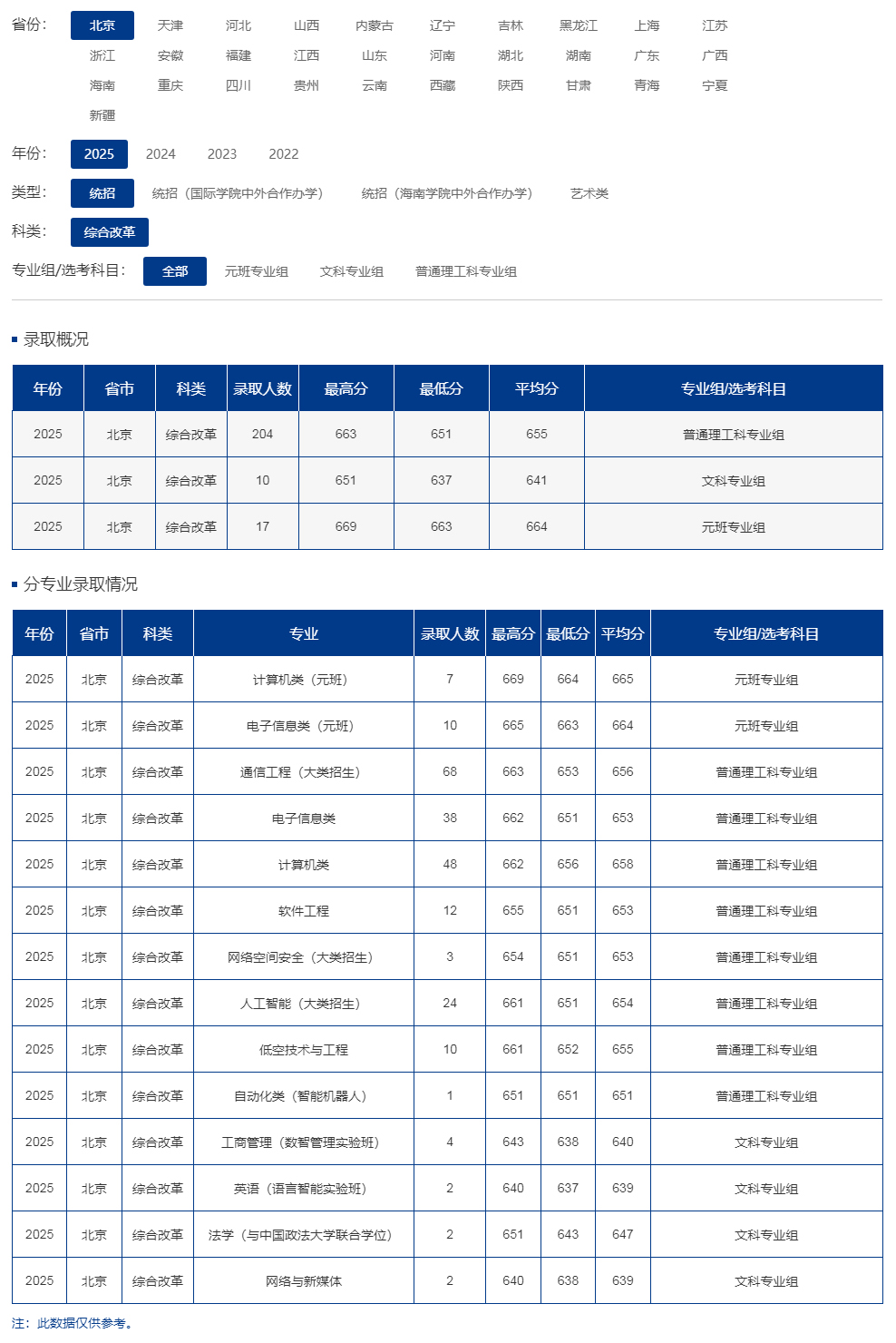 其他类别及省份信息详见:https://zscx.bupt.edu.cn/zsw/lnfs.html