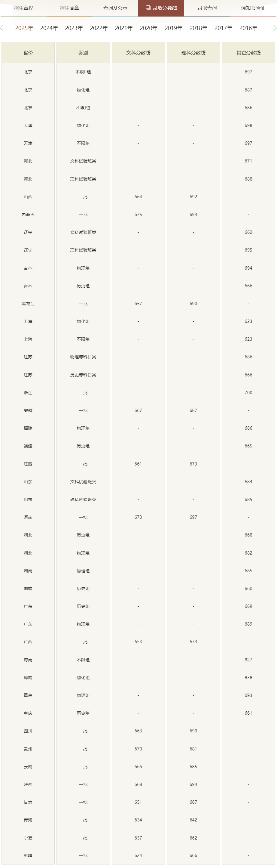 北京大学2025年录取分数线