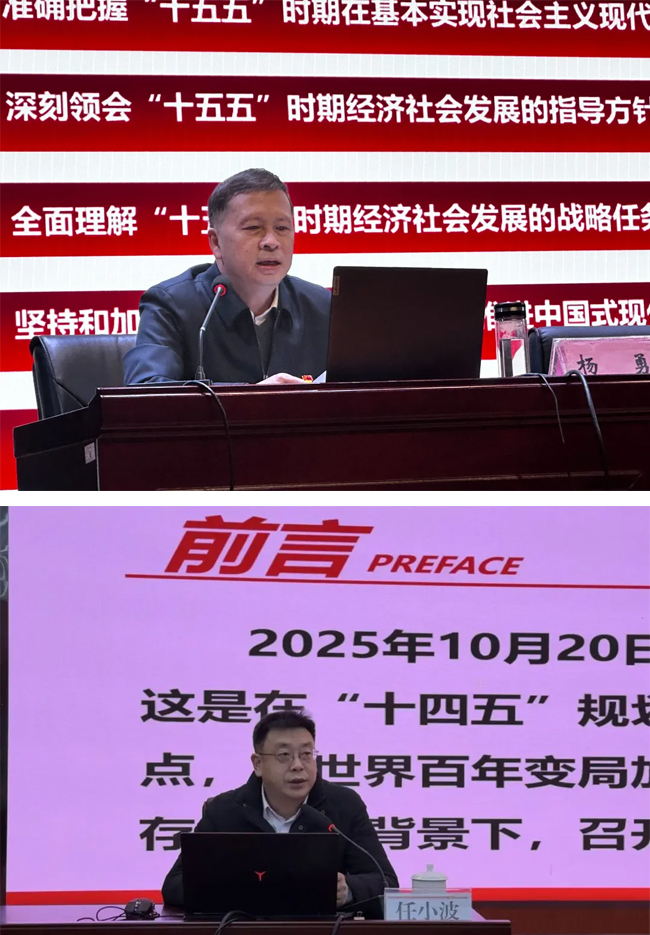 宣讲聚焦习近平总书记在党的二十届四中全会上的重要讲话精神和“十五五”规划《建议》,紧扣国家发展大局与学校办学实际,深入解读我国发展面临的形势与任务,阐释“十五五”时期经济社会发展的指导思想、主要目标、战略任务和重大举措。同时结合坚持和加强党的全面领导根本要求,强调要把党的领导贯彻到办学治校全过程各方面。党委班子成员还结合市委六届八次全会精神,向师生解读了“十四五”时期重庆发展的指导思想、核心目标与重点任务,引导师生自觉把学校发展置于国家战略和区域发展布局中谋划推进。