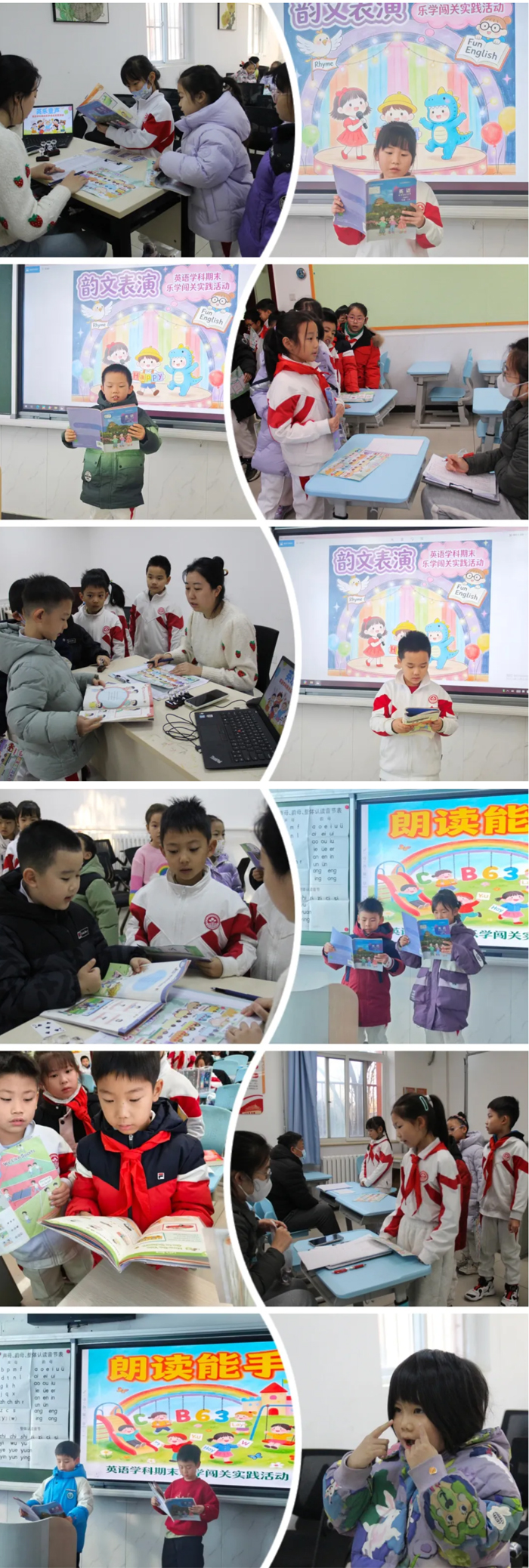 英语天地歌声、笑声朗朗。“英乐童声”与“韵文表演”环节,孩子们唱跳结合,节奏明快;“童声诵英”展现语音语调;“情境问答”模拟真实交际场景,考验反应与表达;“快乐星期周”在游戏中巩固基础词汇。孩子们在轻松的氛围中大胆开口,体验英语交流的乐趣。