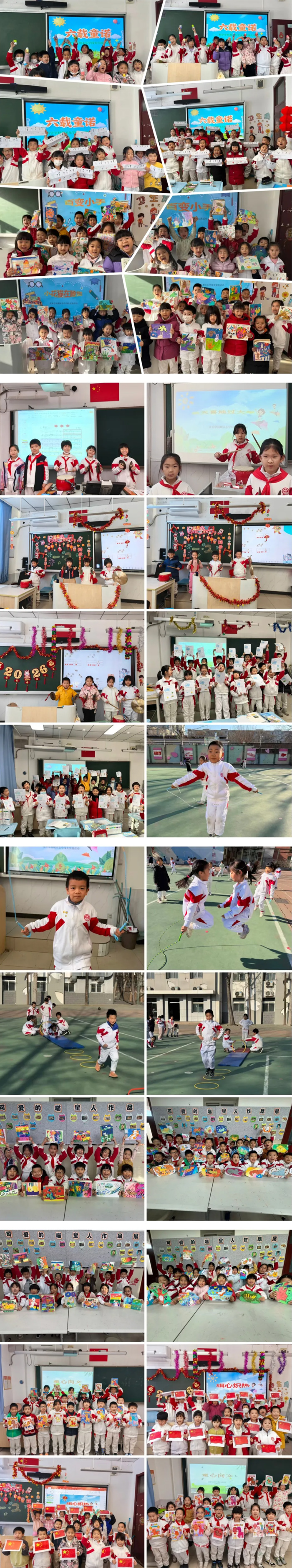 综合素养项目最为热闹,充分体现了“五育融合”。音乐的“锣鼓乐翻天”与“欢喜过大年”让节奏与节拍化作跃动的音符;美术的“百变小手”(手工)与“童心美绘”(绘画)让想象力在指尖绽放。体育的“跳花样”与“障碍跑酷”挑战体能,洋溢活力。道法的“旗心炽热”与“童心向文”渗透爱国与文明教育。科学的“六载童诺”与“观察艺术家”则激发了探索自然与科学的好奇心。