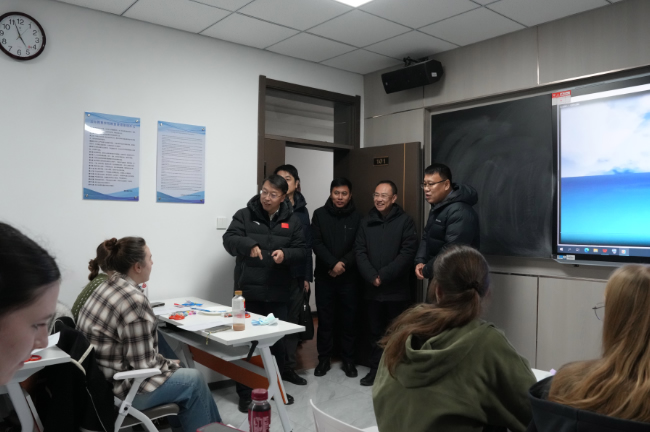 孔峰在国际教育学院了解了寒假在校留学生情况,深入到课堂与参加渤海大学2026年中国政府奖学金国际寒假项目的俄罗斯籍留学生进行了亲切交谈,了解他们汉语学习情况和中国传统文化体验收获。他指出,学校近年来在国际交流合作方面做出了很大努力,依托两所孔子学院在传播中华文化方面,取得了很好的工作效果。学校要继续做好对外交流合作的各项工作,紧扣高水平对外开放要求,锚定教育强国建设目标,深化“一带一路”校际合作,做强孔子学院与“留学中国”品牌,拓展优质生源,打造文明互鉴、提质增效的国际教育高地。
