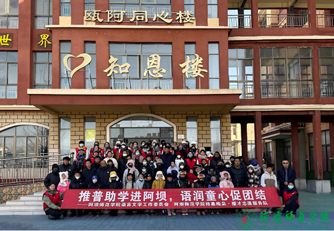 为深入贯彻落实国家通用语言文字推广普及工作要求,助力民族地区教育高质量发展,1月19日,阿坝师范学院“格桑梅朵·樱才”志愿服务队13名师生赴阿坝县,正式启动新年度“团团带娃”推普助学活动,以实际行动服务基层教育,彰显阿坝师范学院服务民族地区教育事业高质量发展的责任担当。