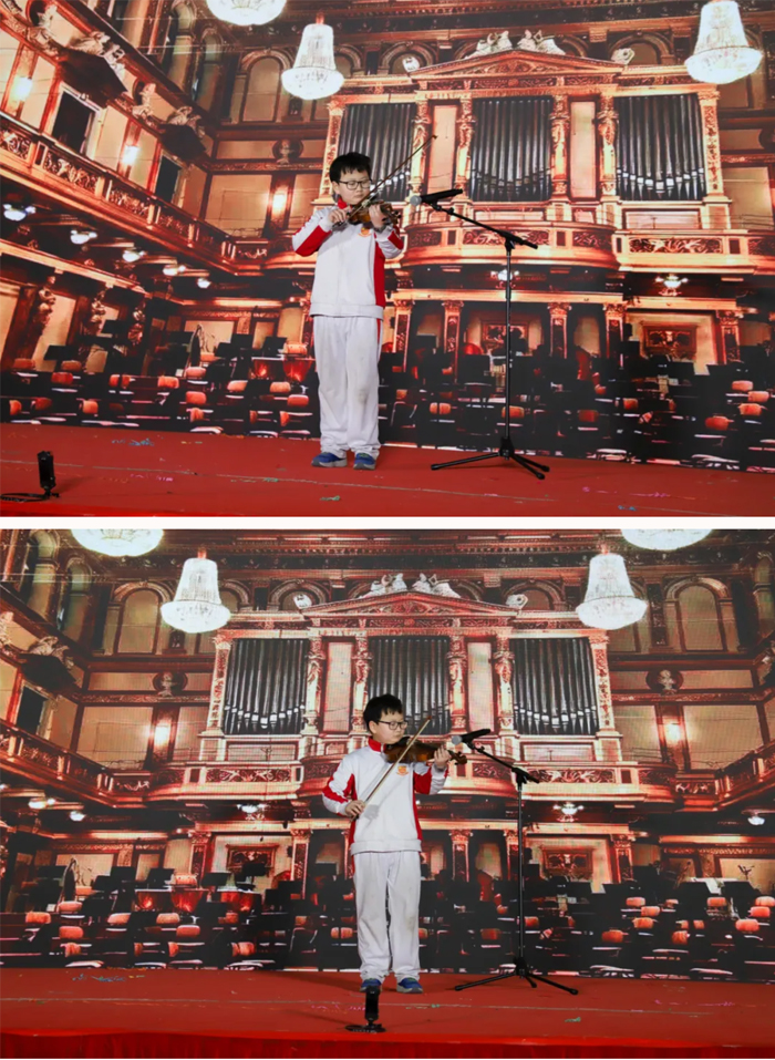 小提琴、电子琴、吉他与长号,四种音色交织成回忆的底色,与同学们清澈的歌声完美搭配,共同演绎一曲《晴天》。默契的伴奏与人声交融,每一段旋律都直击心灵,让全场都沉浸在这份无比治愈的青春美好之中。