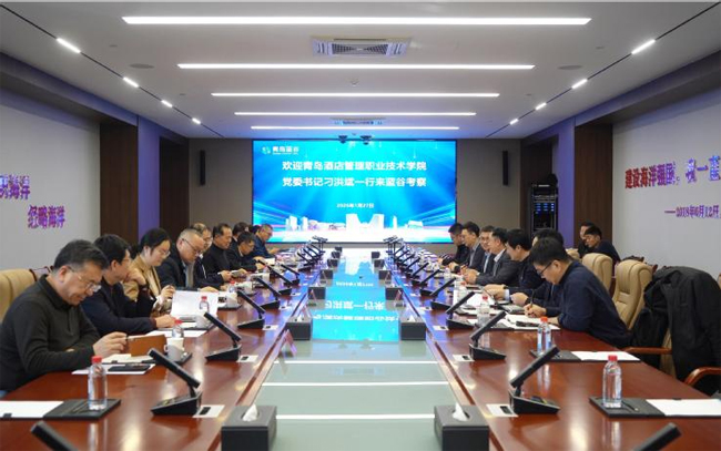 (基建处 李贺)1月27日,青岛酒店管理职业技术学院党委书记刁洪斌带队赴青岛蓝谷管理局,与青岛市政府副秘书长,青岛蓝谷管理局党委副书记、常务副局长,即墨区委副书记杜乐江就学校蓝谷校区项目建设进展及当前需协调解决事项进行现场调度与座谈交流。学校党委委员、副校长于宏刚参加座谈。