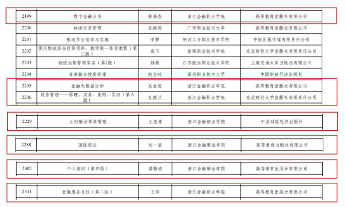 近日,教育部职业教育与成人教育司公布第二批“十四五”职业教育国家规划教材书目,浙江金融职业学院教师主编的七部教材成功入选。这是浙江金融职业学院扎实推进中国特色高水平高职学校和专业建设,紧密对接新时代职业教育改革要求,在教育教学改革与教材建设领域取得的又一标志性成果。