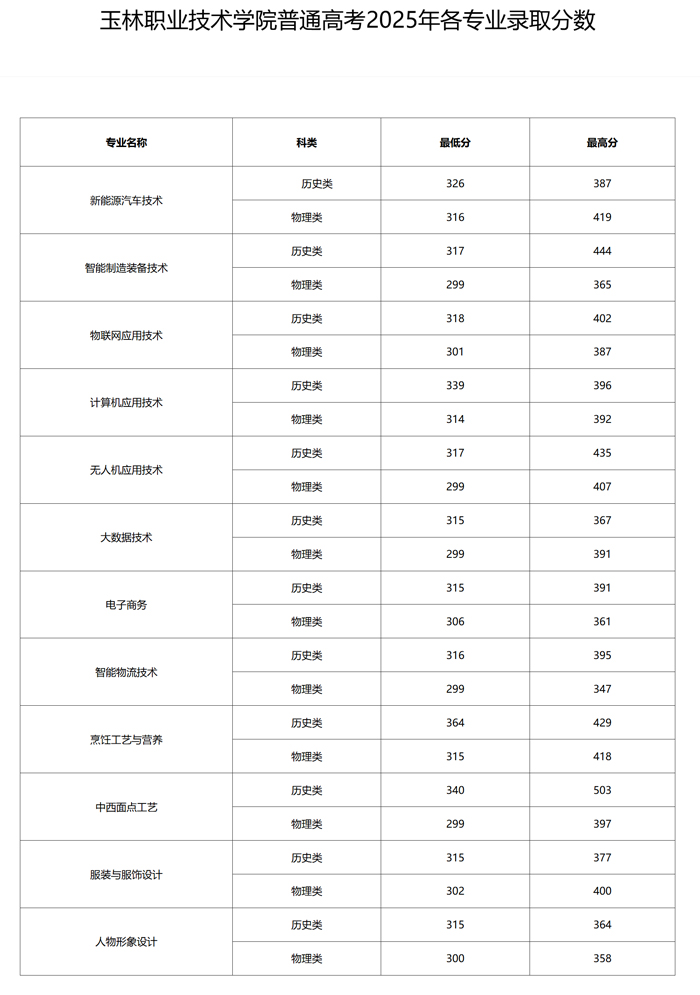 江西现代职业技术学院2025年江西省秋季高招各专业录取情况表