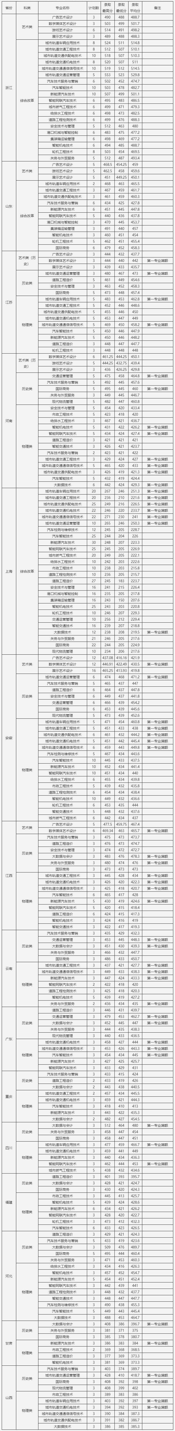 上海交通职业技术学院2025年秋季统一高考招生分省分专业录取分数线