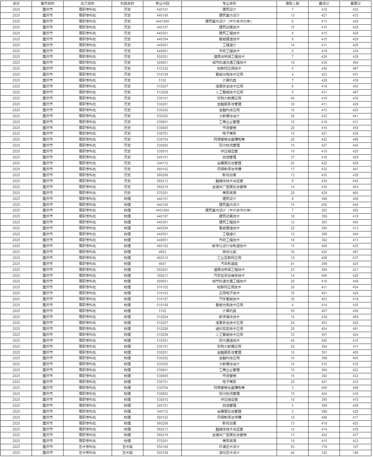 重庆工商职业学院2025年秋季统招重庆录取分数(仅供参考)