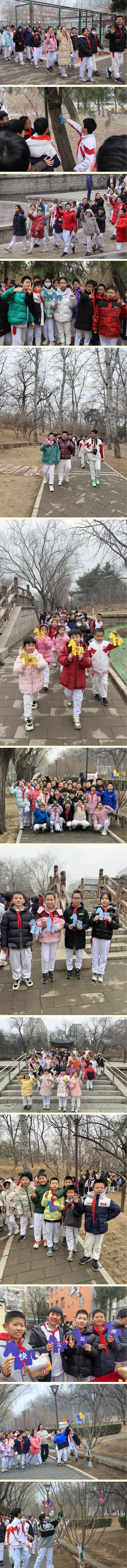 随后,姜辉主任就健步走活动路线、“寻马”任务规则及安全注意事项进行详细讲解,确保全体师生明晰活动要求,保障活动安全有序开展。随着出发指令下达,各班级队伍整齐有序,向着元大都遗址公园进发。学子们步履轻快、笑容灿烂,一路欢声笑语相伴而行。春日枝头新绿初绽,师生队伍宛如一条灵动的彩带,穿梭于公园的林荫小径间,成为春日里一道靓丽的风景线。