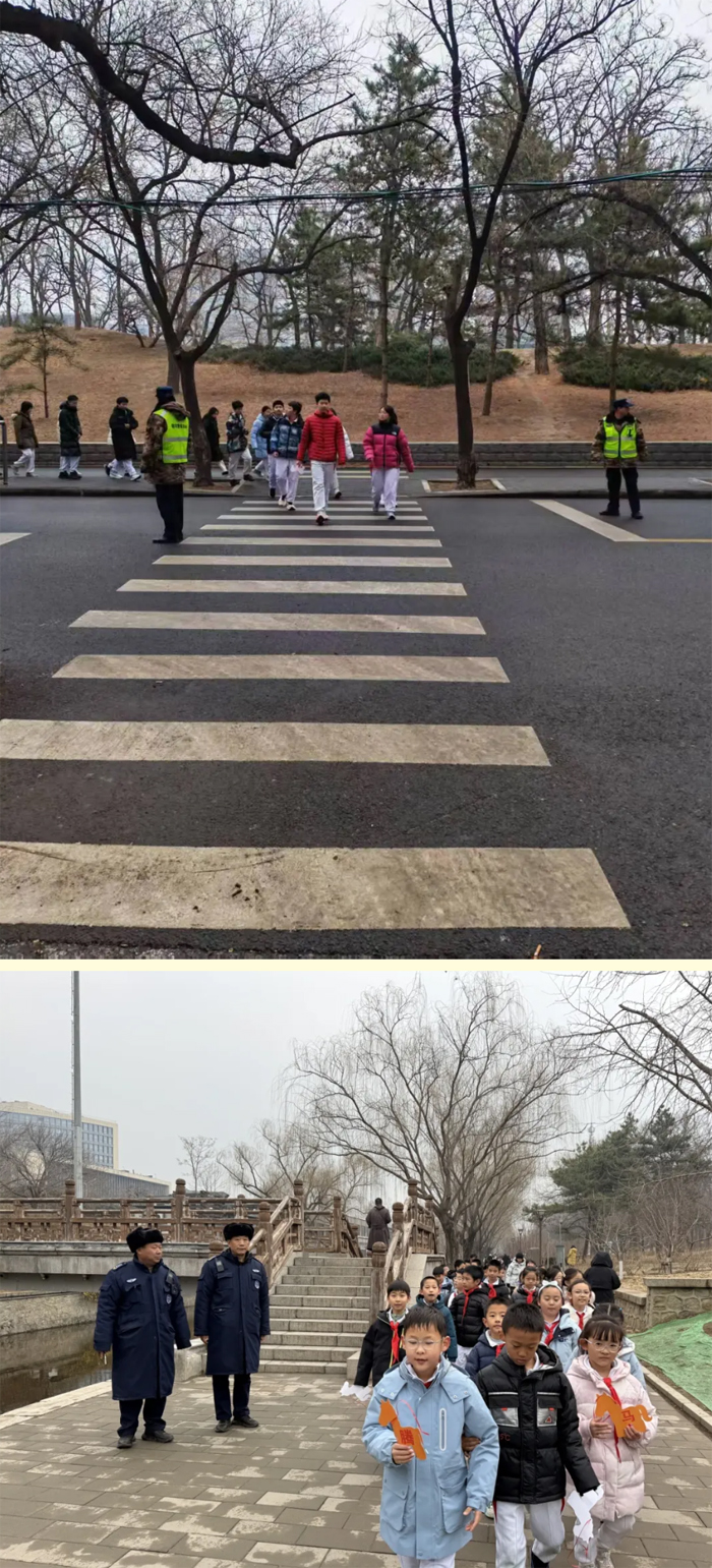 活动的圆满举办,得益于学校各部门的周密部署与多方力量的全力护航。学校从路线规划、物资筹备、站点设置到安全保障,每一环节细致严谨、万无一失;樱花社区、和平街派出所、元大都公园综治办鼎力支持,保安人员、民警、校医全程随行值守,以全方位的守护,为学子们的春日之行筑牢安全屏障。