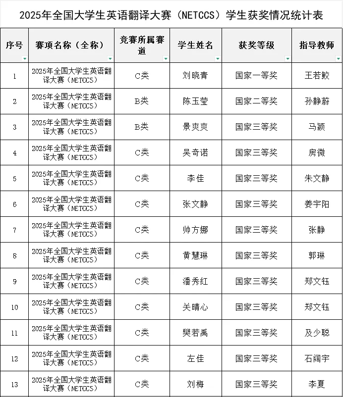 近日,2025年全国大学英语翻译大赛(NETCCS)获奖名单正式揭晓,黑龙江外国语学院学子凭借扎实的语言功底、出色的翻译能力和创新思维,在全国众多参赛高校中脱颖而出,一举斩获各级奖项215项,创该校在该项赛事中的历史最佳成绩,用实力诠释了学校“外语+”育人模式的显著成效。