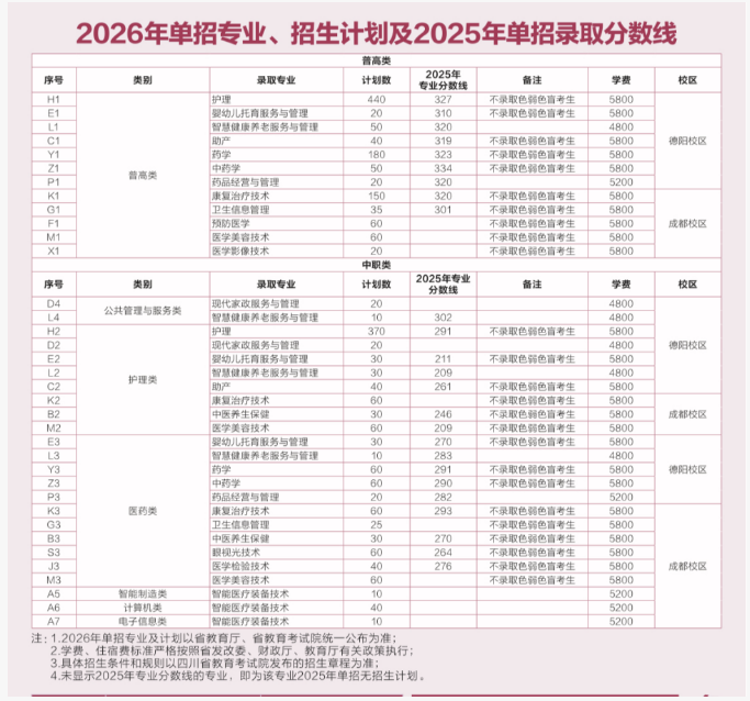 四川护理职业学院2026年单招计划