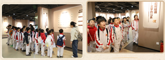 紧接着老师引导学生们大声朗读展板上的释读,稚嫩而整齐的童声在展厅中回荡,仿佛穿越千年,与古老的文字隔空对话。
