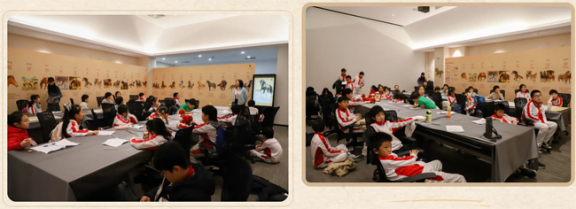 恰逢馆内推出马年特展,本次特展从《说文解字教本》中撷取60余个与马相关的汉字集中亮相。从“骄”(高大的马)到“骁”(勇武有力之马),从“骊”(纯黑的马)到“骐”(青黑如棋纹的马),再到历史上赫赫有名的赤兔、乌骓、的卢等,它们不止是战马,更是一个个载入史册的传奇。讲解员娓娓道来,同学们听得入神,古人曾为马造字100有余,每一个字背后都藏着一个故事,一段历史。这次特展让学生们对汉字的理解更加立体而生动。