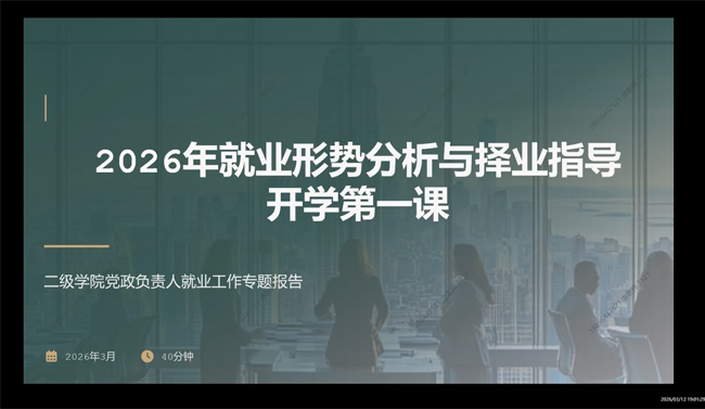 3月12日晚,合肥职业技术学院汽车应用与轨道交通学院通过腾讯会议平台,召开2026届毕业生“开学第一课”就业专题授课。该院党总支副书记(主持工作)尹仕果面向全体2026届毕业生深入分析了当前就业形势,引导同学们树立正确择业观,动员大家积极行动,抢抓就业先机。此次会议是落实省厅关于高校毕业生就业工作统一部署的重要举措,也是该院推进2026届毕业生就业工作的关键一环。