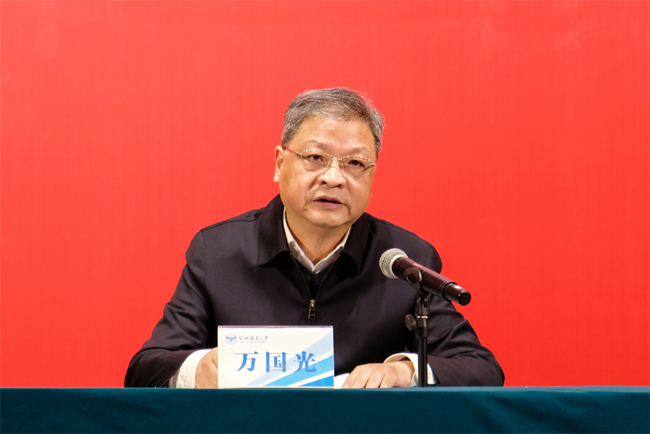 万国光强调,打赢申建攻坚战,需从四个维度凝聚共识、汇聚合力。一要回望来时路,在四十二年的办学积淀中凝聚申建的磅礴底气与历史自觉;二要研判时与势,在强国建设中把握申建的战略机遇与历史必然;三要聚焦攻坚战,以“三年行动”为蓝图,坚持“学明白、想清楚、干到位、系统抓”,解决“为什么干、干什么、怎么干、怎么干好”,确保各项核心指标全面达标;四要汇聚决胜力,以过硬作风与担当,坚决破除“坐等靠要”“差不多”“不愿得罪人”“围墙意识”等顽疾,重塑执行文化,坚持风腐同治,以严明纪律护航申本攻坚。