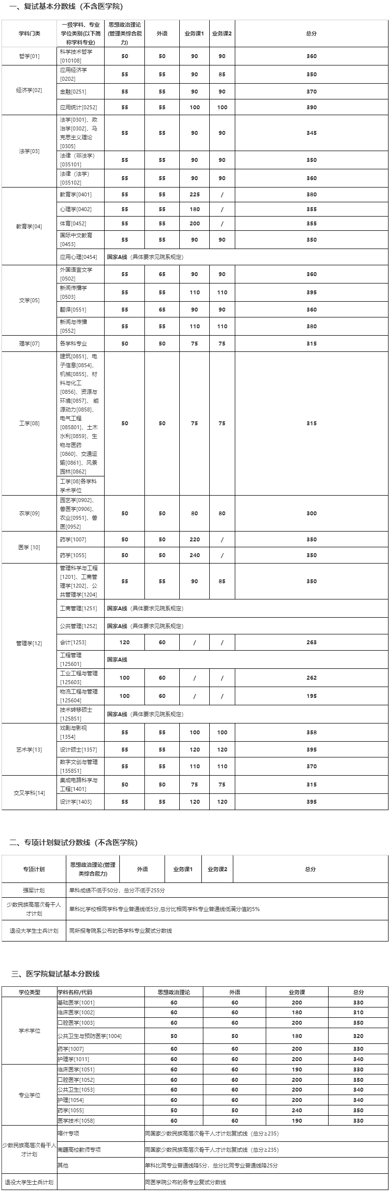 根据教育部规定,结合学校实际情况,经校研究生招生委员会审议批准,现将2026年硕士研究生入学考试复试基本分数线公布如下: