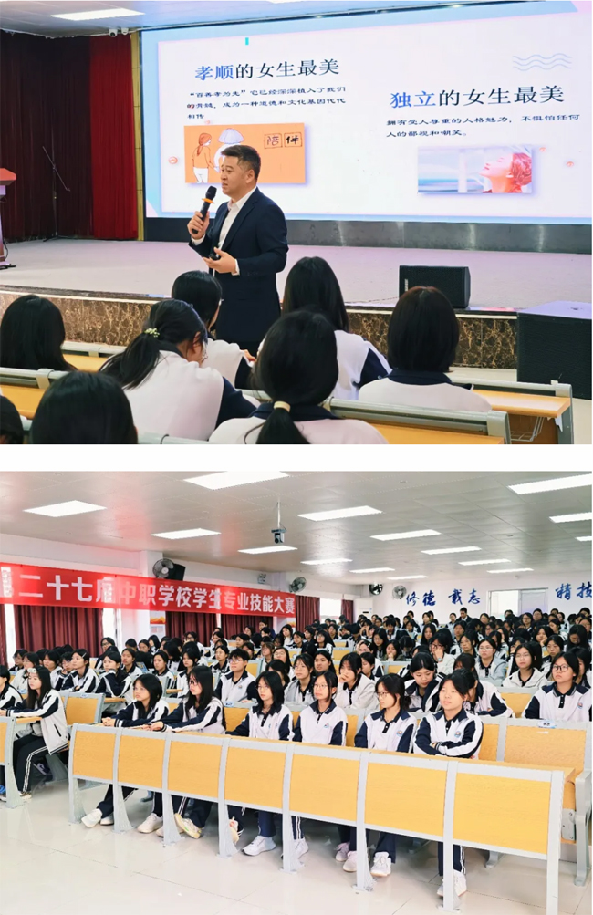 作为女生节的开幕重头戏,“女子学堂”专题讲座于3月6日、3月9日分别在三乡校区和坦洲校区举行。学校纪委书记、副校长刁卓担任主讲,围绕“全人教育”理念与“六有”好学生培养目标,结合优秀女性事迹,从善良、自信、独立、孝顺等角度解读女性之美,引导女生涵养内在品格,提升综合素质。讲座现场互动热烈,同学们在交流中深化对性别平等与自我成长的思考。