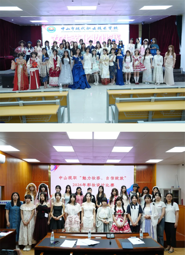 3月24日,“魅力妆容,自信绽放”化妆比赛在两校区同步举行,共吸引47支队伍参赛。选手们以“国风设计”为主线,融合唐、宋、明等朝代服饰元素与现代审美,在90分钟内完成妆容创作,并通过走秀或静态展示进行呈现。比赛不仅考验选手的化妆技巧与创意表达,更展现了职校学子对传统文化的理解与创新演绎。