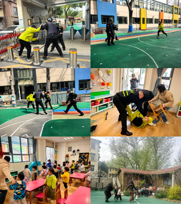 演练开始,模拟突发暴力人员侵入校园的“险情”突发,全员迅速进入实战状态。安保人员第一时间携带防爆器材快速抵达指定区域,果断采取防控措施,有效阻拦“险情”扩散;户外活动的幼儿在老师带领下,快速有序向就近安全区域转移;室内活动的幼儿在老师引导下迅速撤离,全力保障孩子们的人身安全。整个演练过程紧张有序,切实检验了师幼的应急处置能力与团队协作水平。