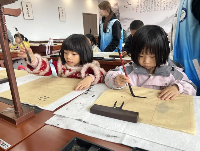 另一位家长则注意到细节:“学校按年龄分班,课程难度不一样,连书法练习内容都分了4—6岁、7—9岁、10—12岁三个版本,比外面很多研学营都专业。”